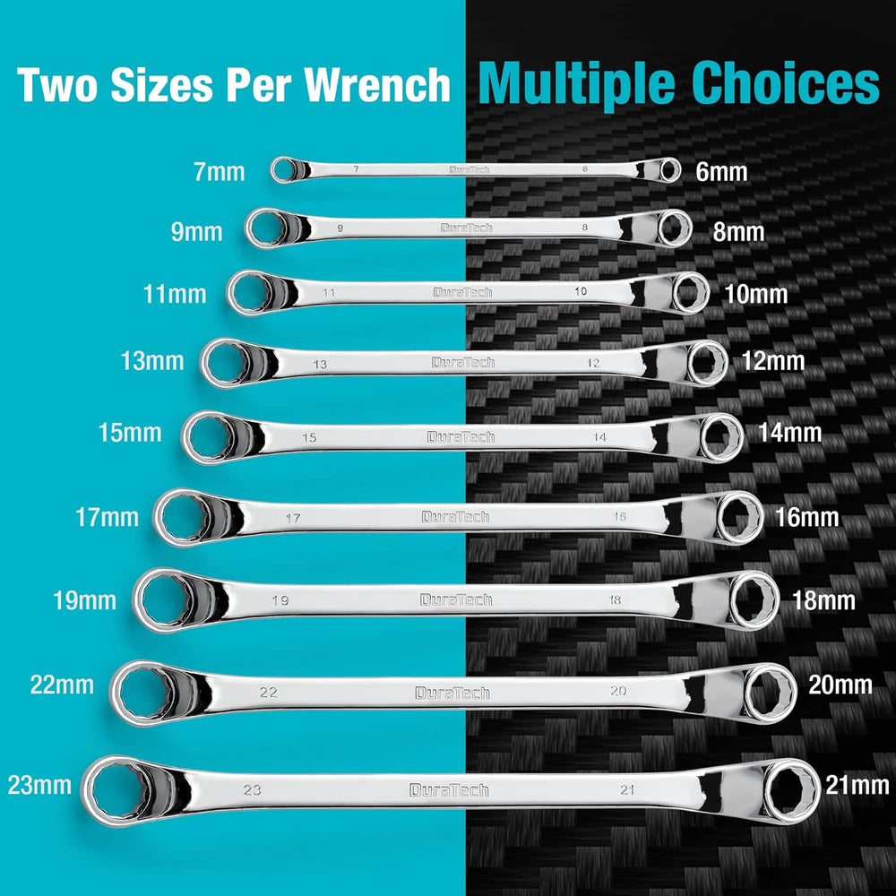 DURATECH Doppel-Ringschlüssel-Satz, 9-teilig, 6-23 mm, Gekröpfter Schraubenschlüssel Set, um 75 Grad
