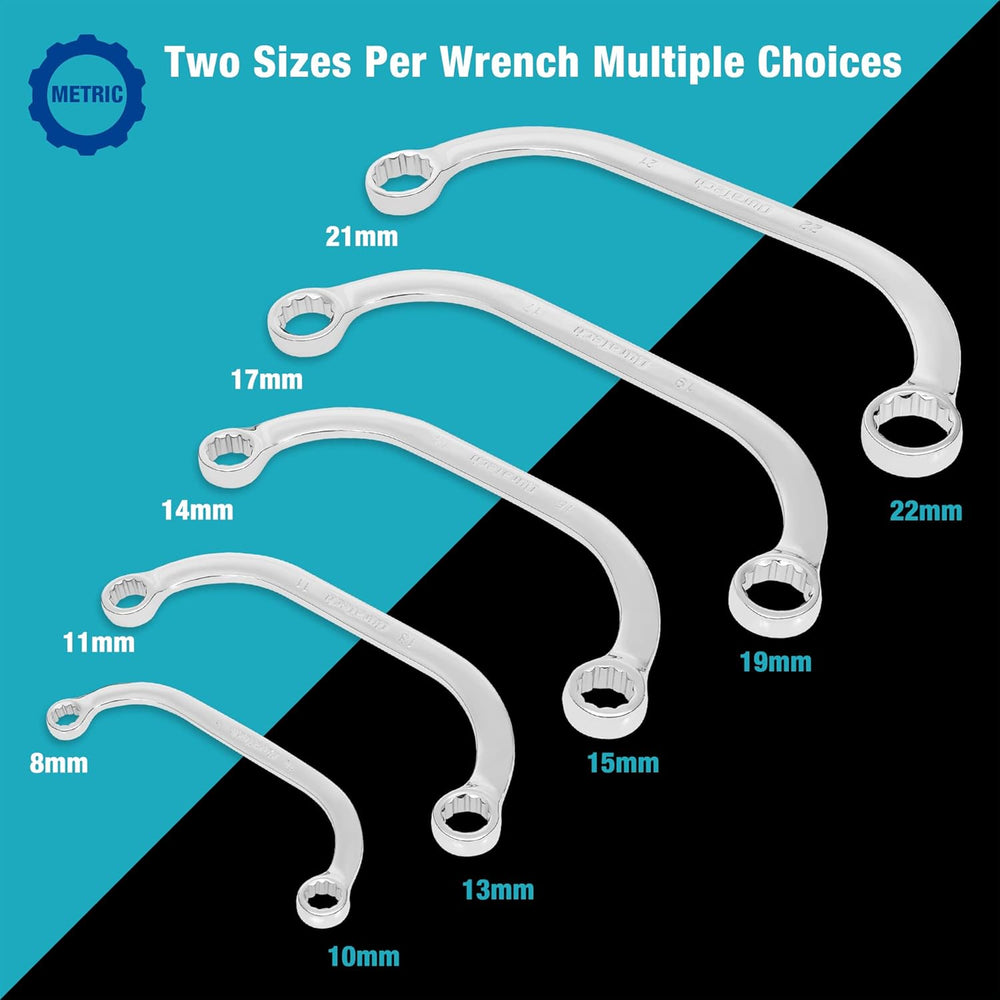 DURATECH Doppelringschlüssel-Satz, Starter-Blockschlüssel-Satz, C-Form Ringschlüssel Set, 5-teilig,