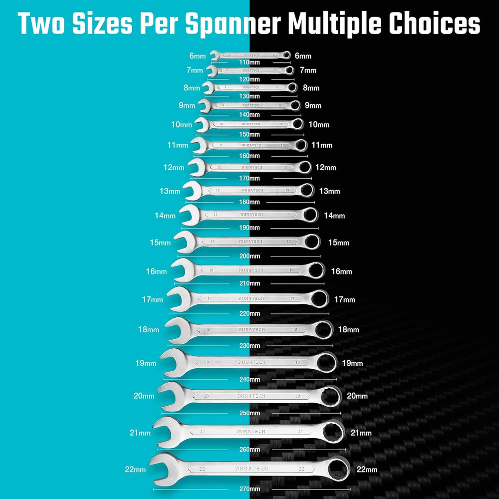 DURATECH Ringmaulschlüssel Set Gabelringschlüssel-Satz, 17-teilig Set, SW 6-22mm, DIN 3113, Chrom-Va