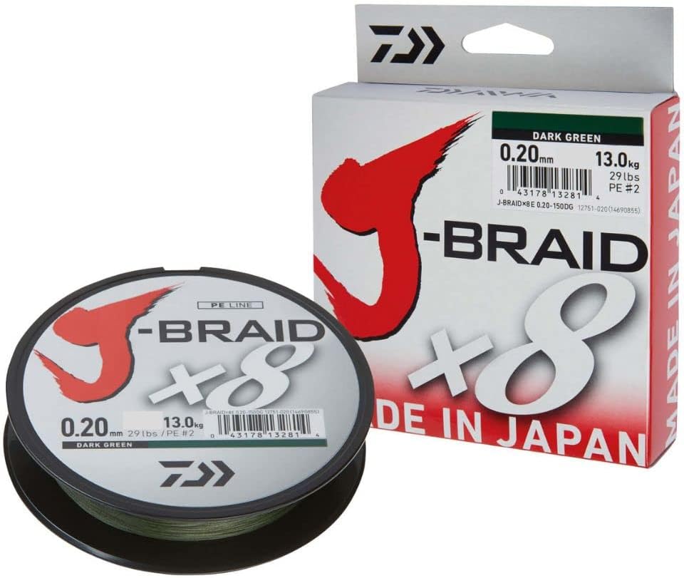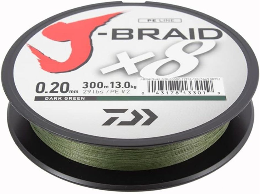 Daiwa 2 STK J-Braid 8 Braid 0.13mm, 8,0kg/18lbs, 300m dunkelgrün (Doppelpack)