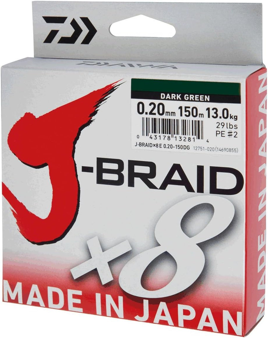 Daiwa 2 STK J-Braid 8 Braid 0.20mm, 13,0kg/29,0lbs, 300m dunkelgrün (Doppelpack)