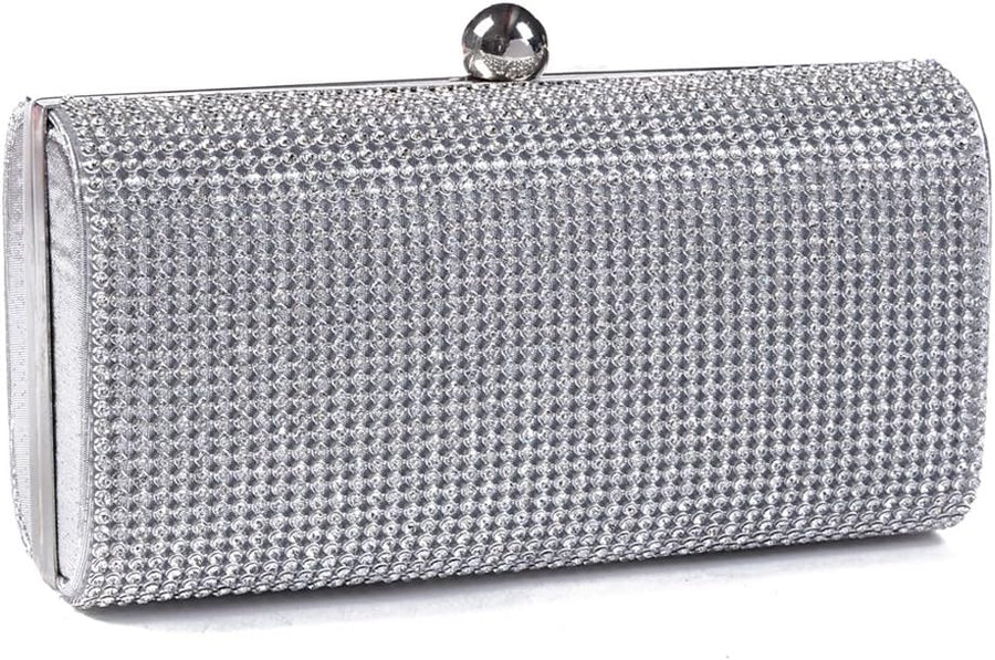 Damara Mini Glitzernde Strassstein Damen Hartschalen Clutch Abendtasche,Silber, Silber