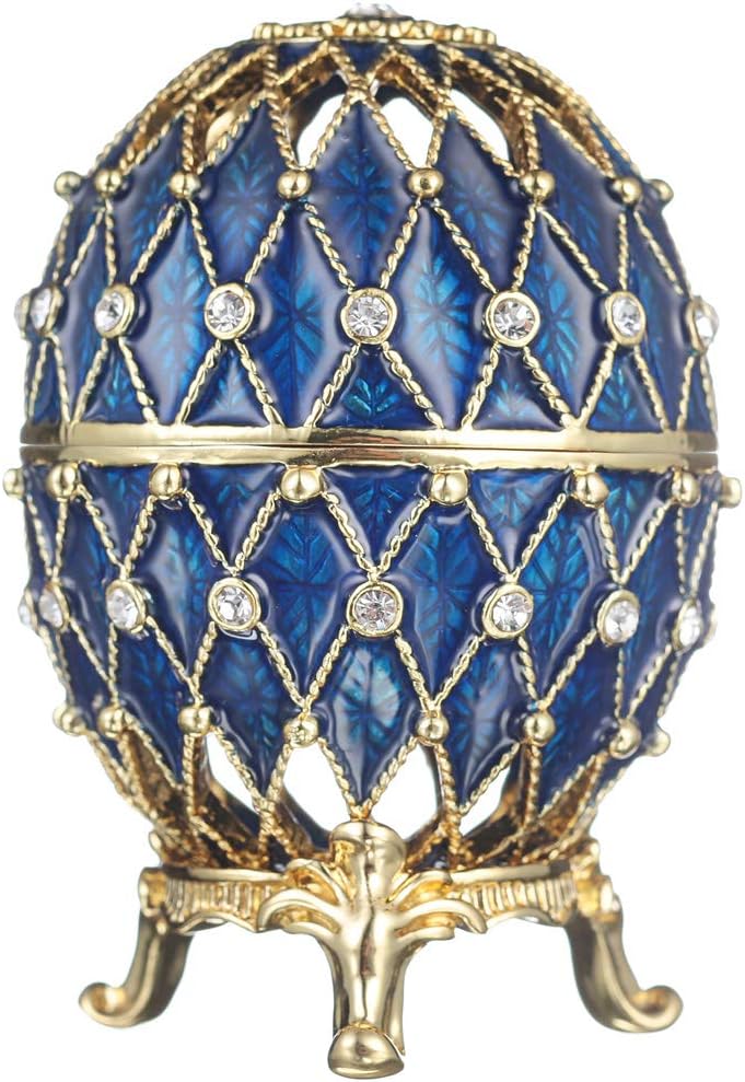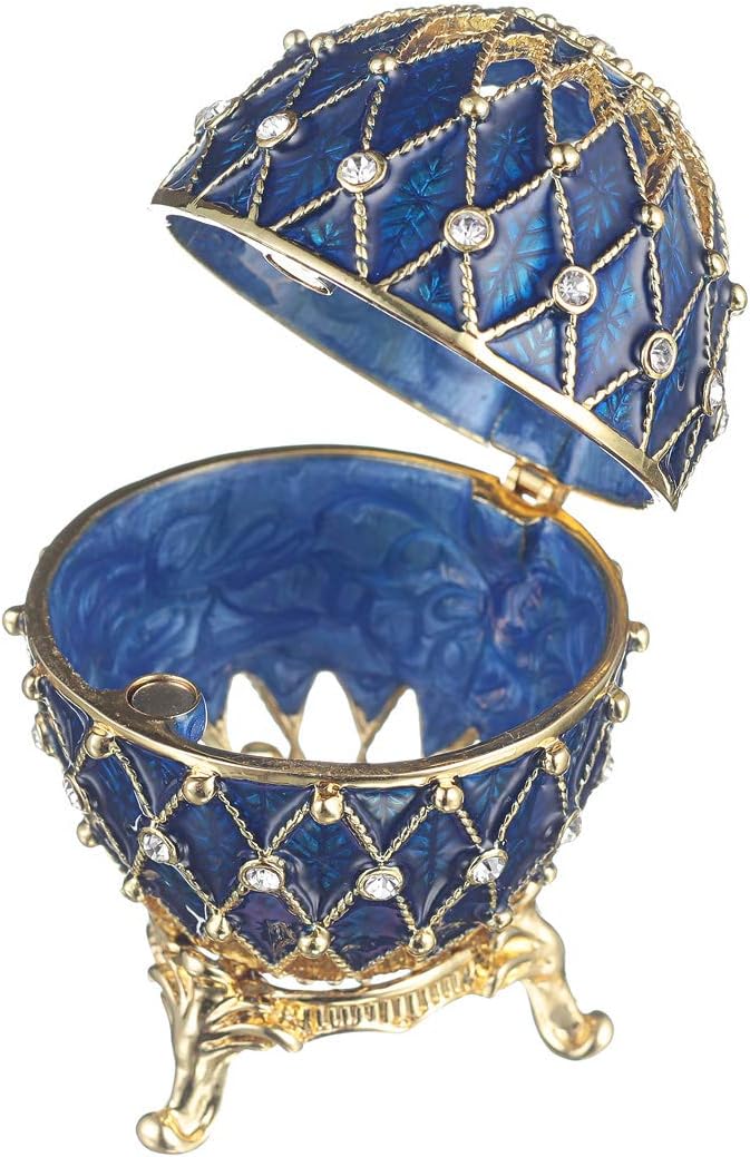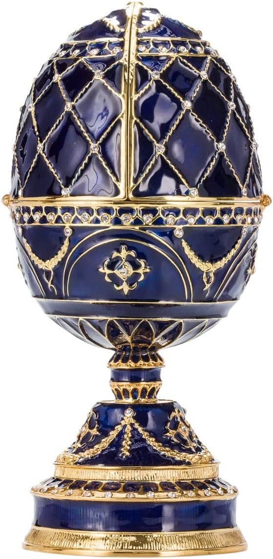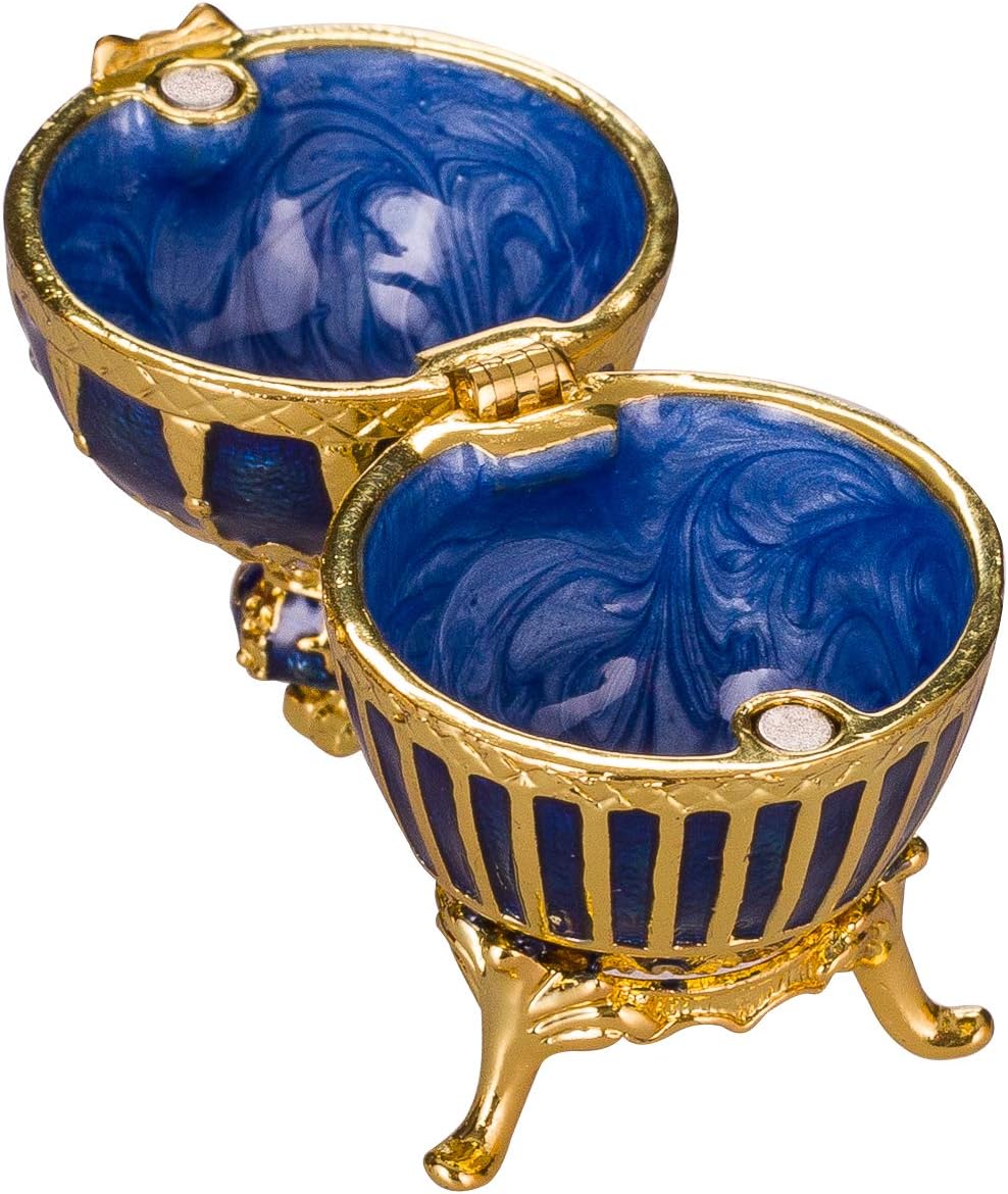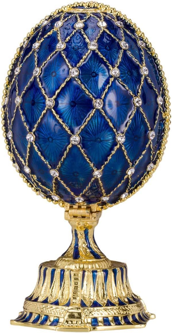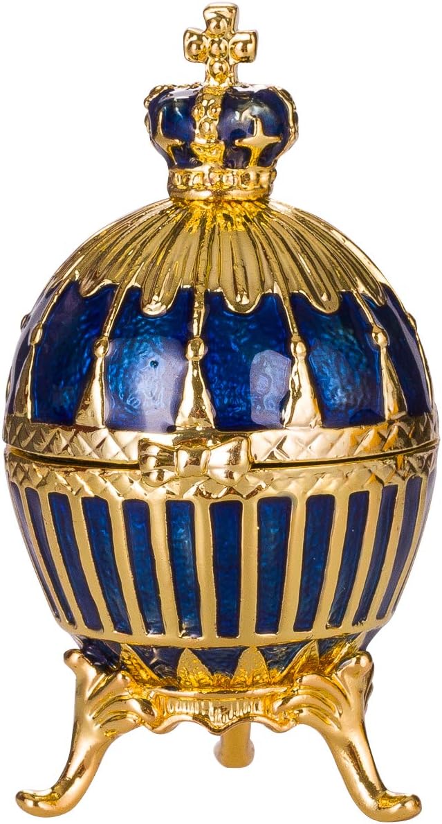 danila-souvenirs Fabergé-Stil Gerippten Ei Schmuckkästchen mit Kaiserkrone 6,5 cm blau
