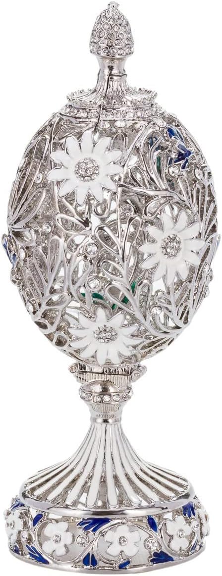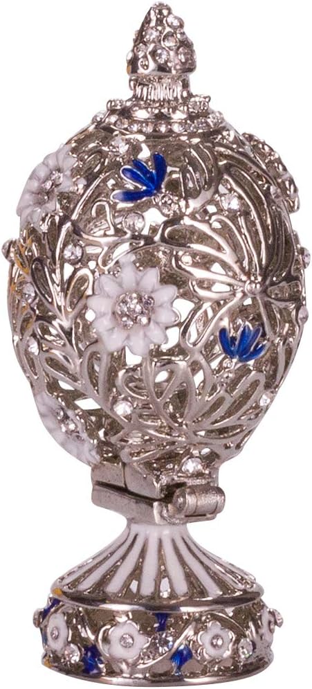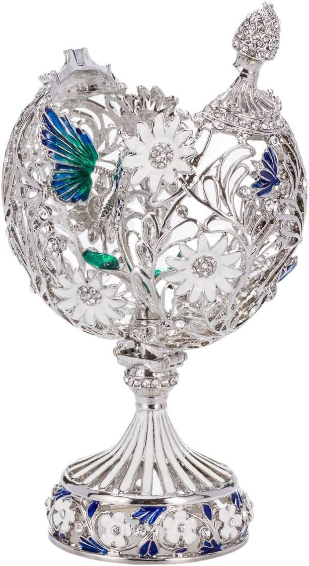 Fabergé-Stil geschnitzt Ei mit Blumen & Schmetterling 7 cm Silberne Farbe