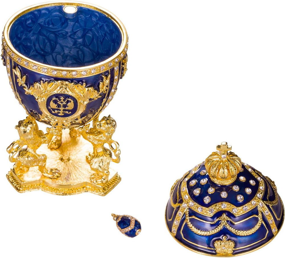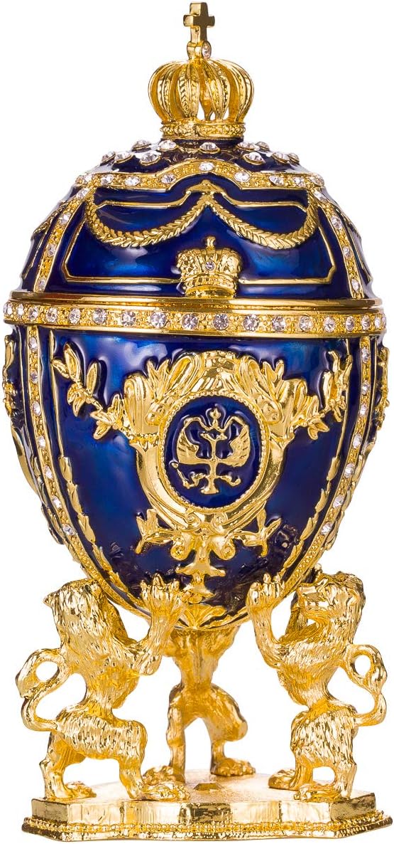 danila-souvenirs Fabergé-Stil Ei/Schmuckkästchen mit Löwen 11 cm blau