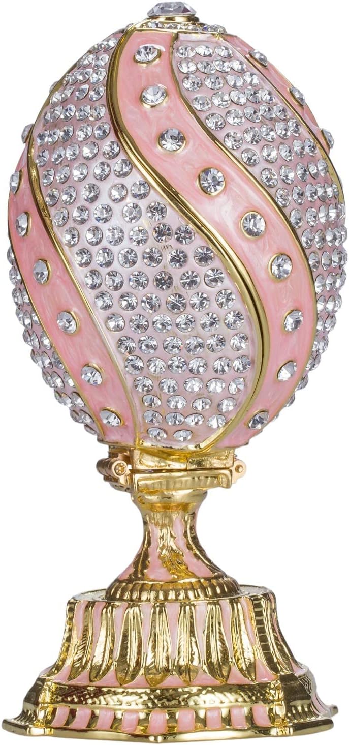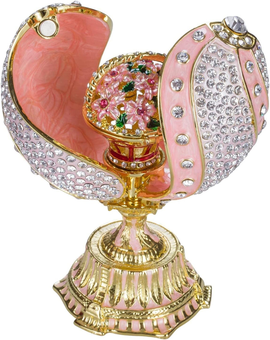 danila-souvenirs Fabergé-Stil verdrehtes Ei mit Korb der Blumen 12 cm rosa