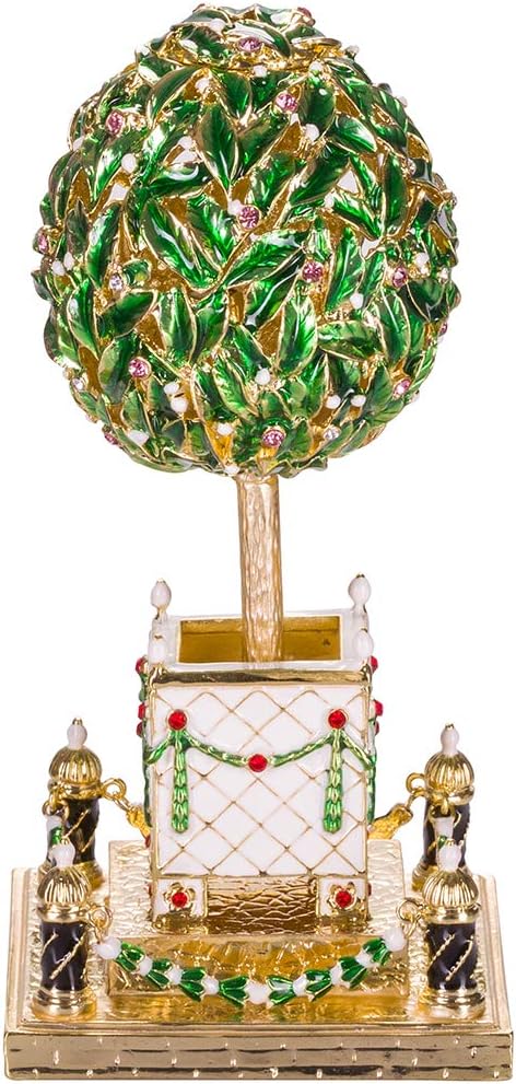 Fabergé-Stil Ei/Schmuckkästchen Lorbeerbaum (Orangenbaum) mit Vogel 16 cm