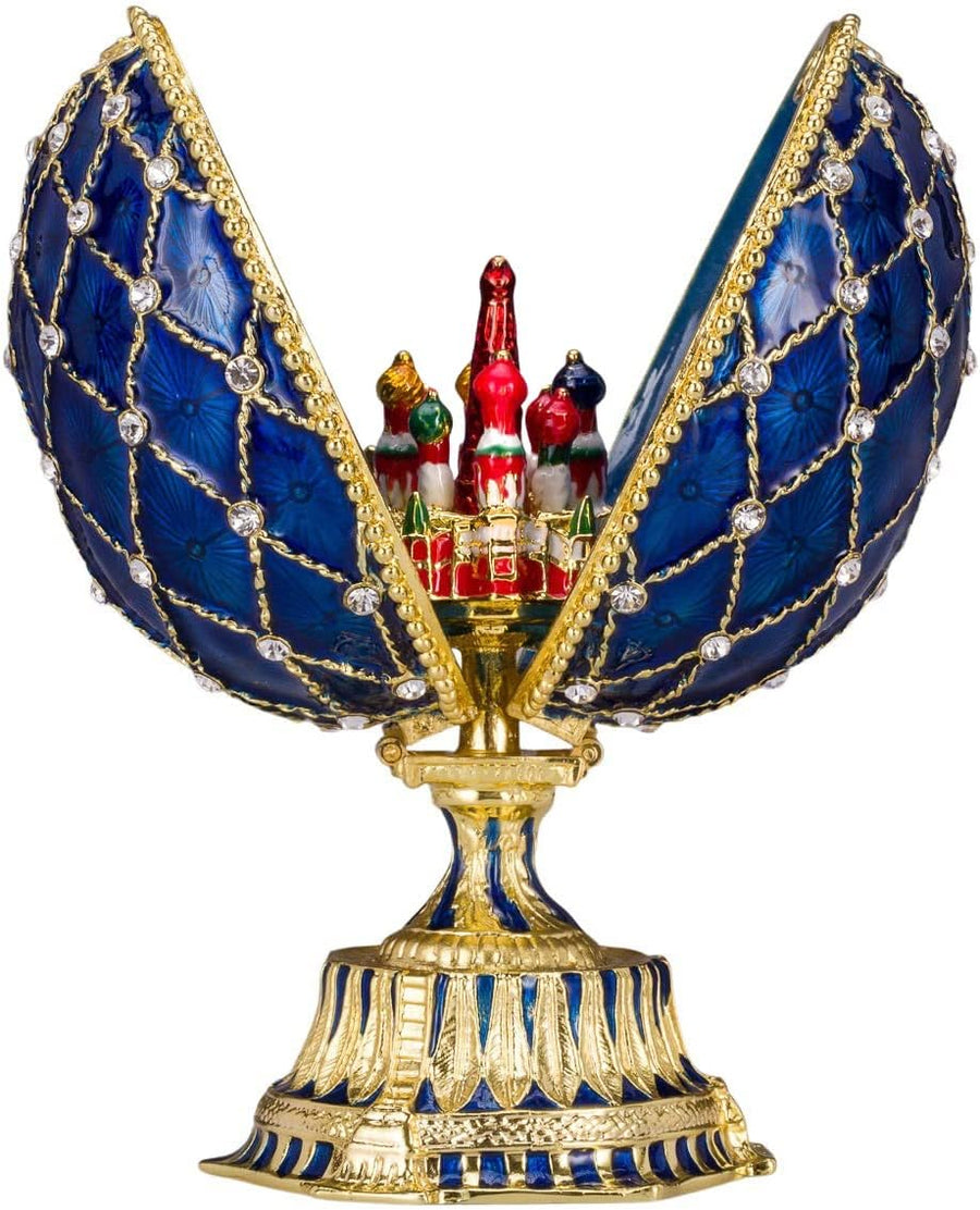 Danila-Souvenirs Fabergé-Stil Ei mit Basilius-Kathedrale 12 cm blau