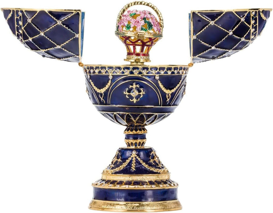 danila-souvenirs Fabergé-Stil Ei Spieluhr Schmuckkästchen mit Korb der Blumen 17 cm blau