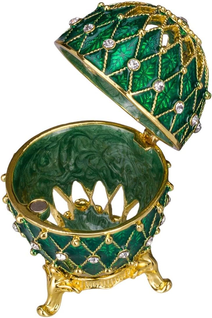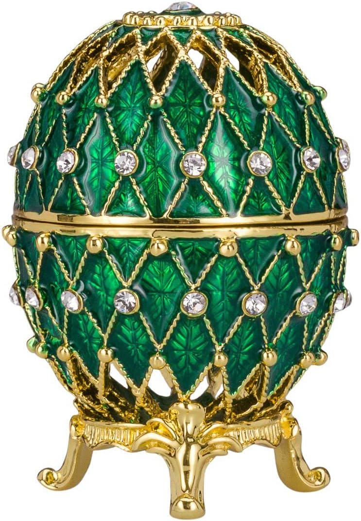 Fabergé-Stil geschnitzt Ei/Schmuckkästchen mit Gitter 7,5 cm grün