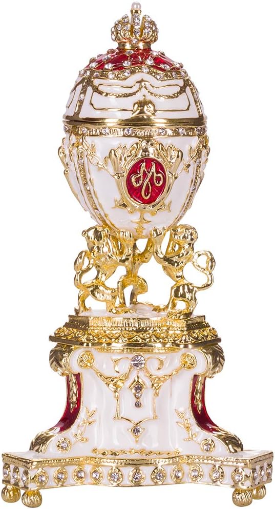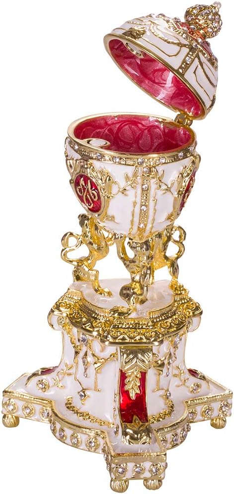 Fabergé-Stil Ei/Schmuckkästchen mit Löwen 15,5 cm rot