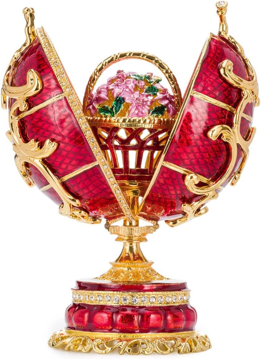 Danila-Souvenirs Fabergé-Stil verdrehtes Ei mit Korb der Blumen 12 cm rot