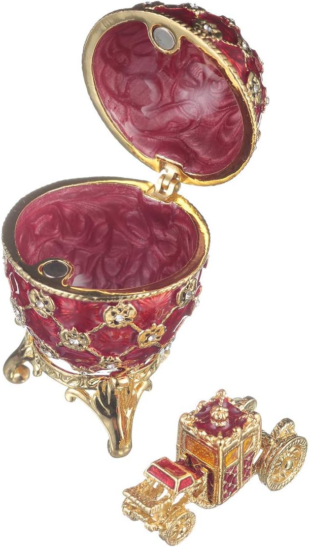 danila-souvenirs Fabergé-Stil Krönungs Ei/Schmuckkästchen mit Kutsche 6,5 cm rot