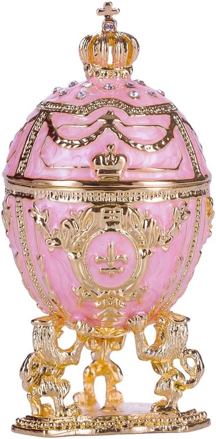 Fabergé-Stil Ei/Schmuckkästchen mit Löwen & Kaiserkrone 7,5 cm rosa