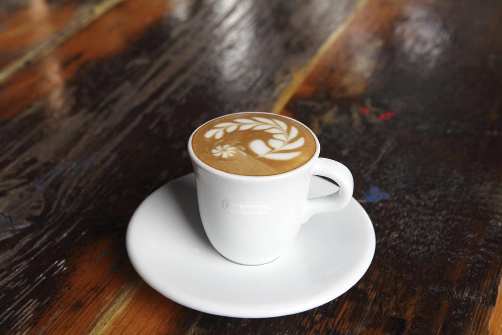 De'Longhi Cappuccinottassen Set DLSC309 – 2 handgemachte Keramik Tassen mit Untertassen, mikrowellen