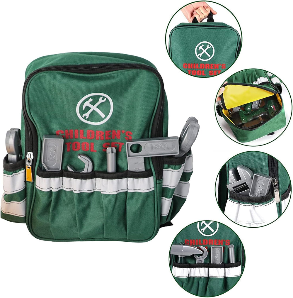 deAO Werkzeugkoffer Kinder, Werkzeug Spielzeug Set mit Elektrische Bohrmaschine, Rucksack, Helm und