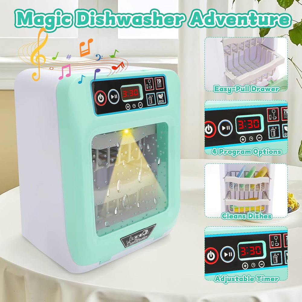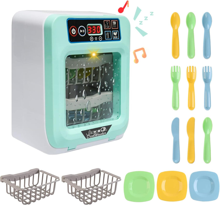 deAO Kinder Küchenset Spielzeug, Geschirrspüler Spielset mit Vielzahl von Zubehör, Sound und Lichter