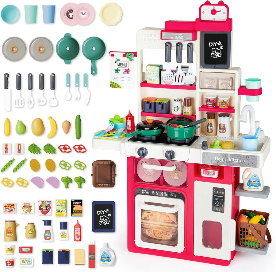 deAO Kinderküche Spielküche mit Licht Ton Wasser Dampf und Küchenzubehör, Kinder-Küchenspielset mit