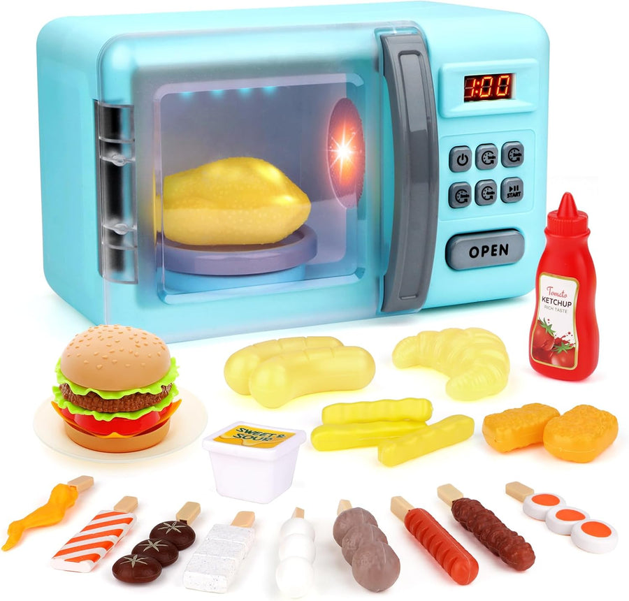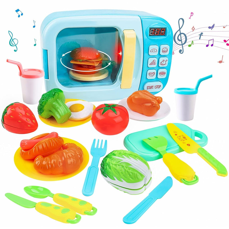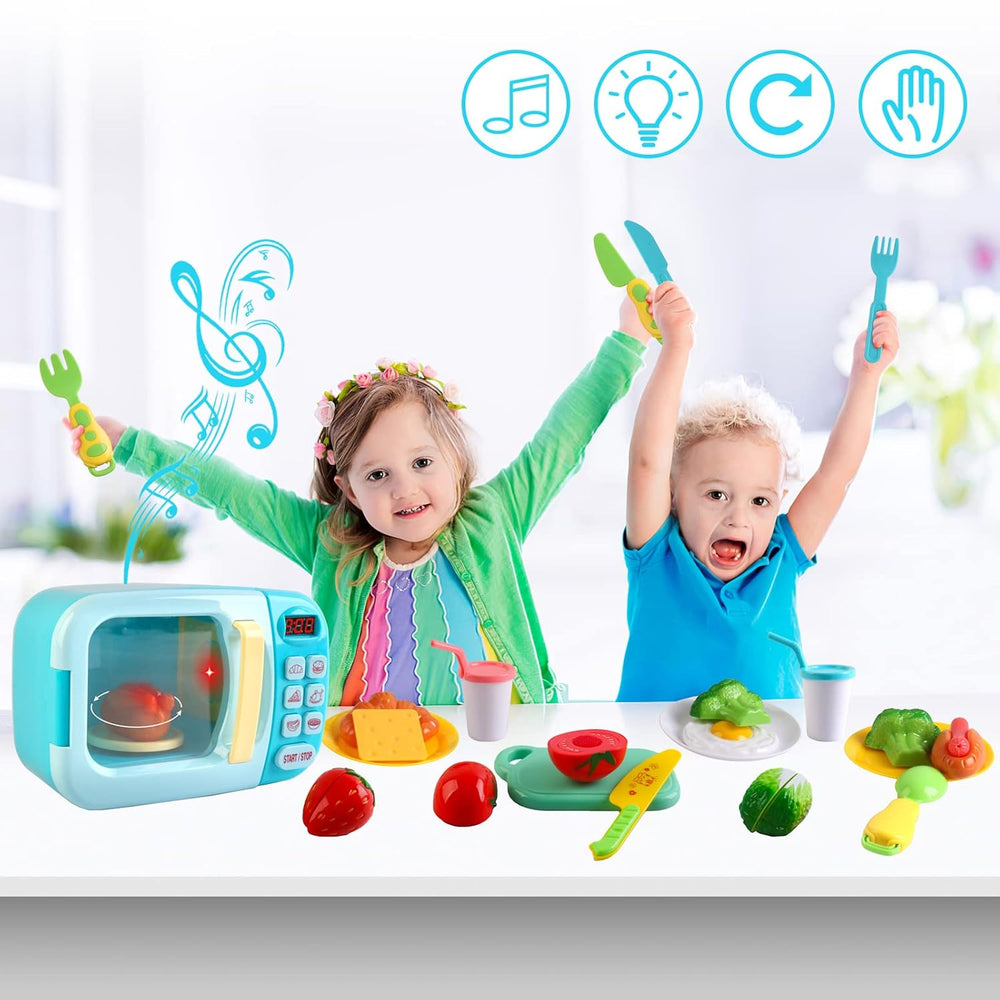 deAO Mikrowellenspielzeug für den Ofen, Spielzeug, Cooking Play Kit mit realistischem Licht, Sound &