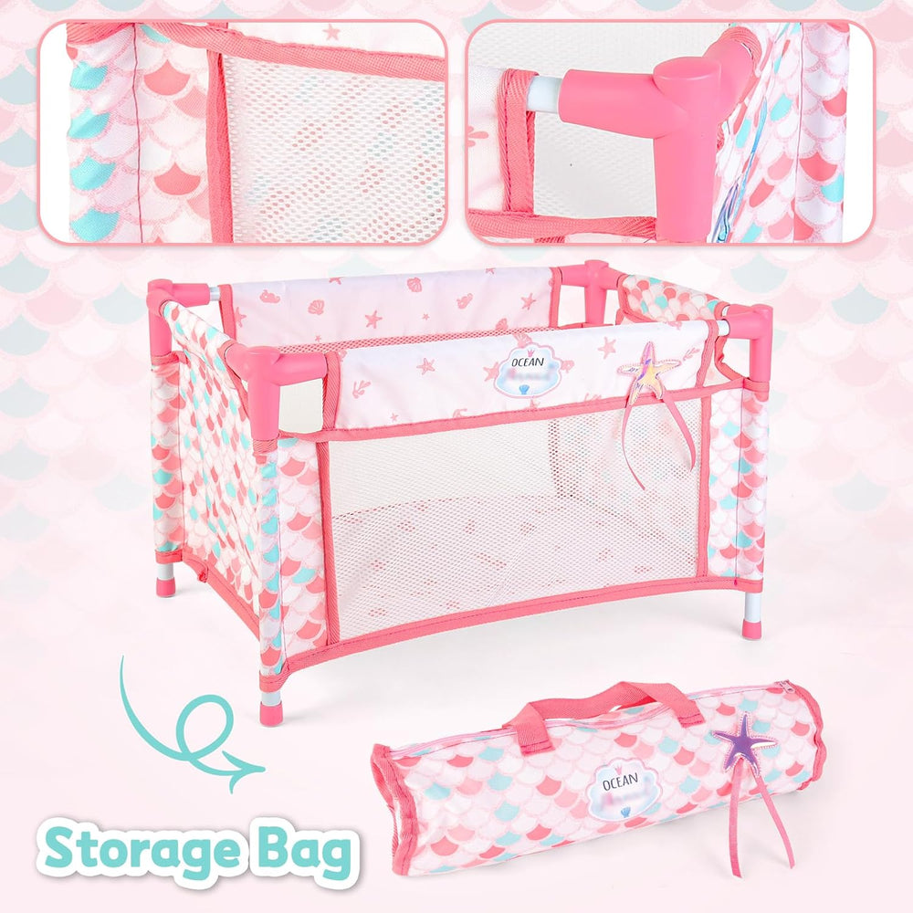 deAO Puppen Badewanne Set mit 36cm Puppe, Baby Nurse Puppen-Badewanne Puppe Bad Set mit Puppenkleidu