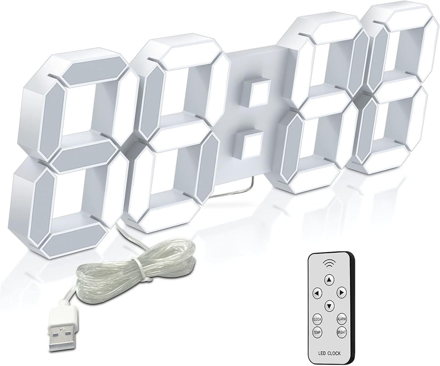 Deeyaple LED Wanduhr Digital Gross Wecker 3D Uhr Dimmbar Snooze USB 12/24Stunden Datum Temperaturanz