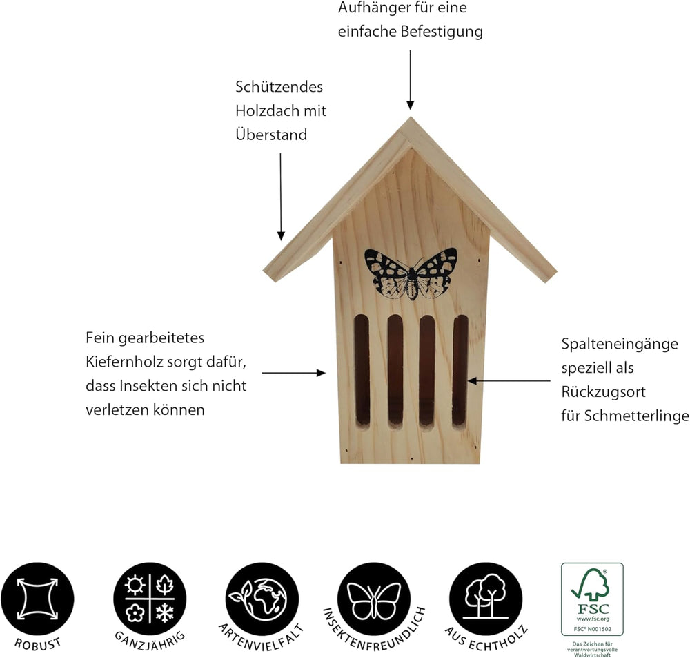 Dehner Natura Premium Schmetterlingshaus Runa, Insektenhotel wetterfest, Insektenhaus/Wildvogel Nist