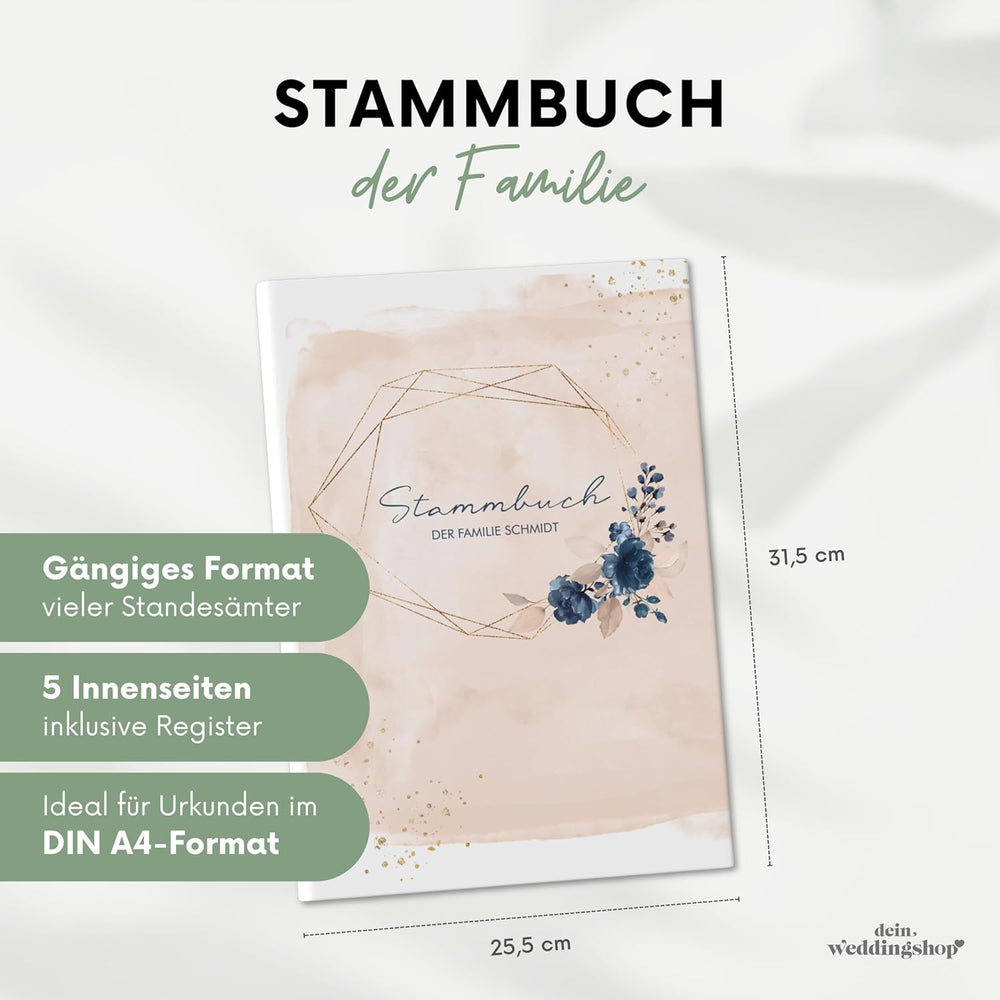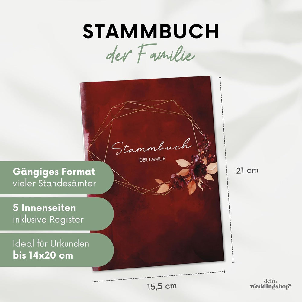 DeinWeddingshop Stammbuch der Familie - Familienstammbuch Hochzeit Standesamt PERSONALISIERT UNPERSO