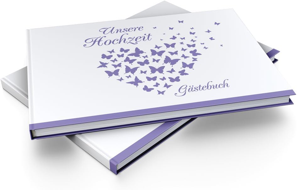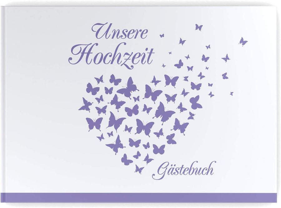 Gästebuch Hochzeit - Hardcover, ohne Fragen, A4 quer, Butterfly Heart (flieder/lila) Flieder / Lila,