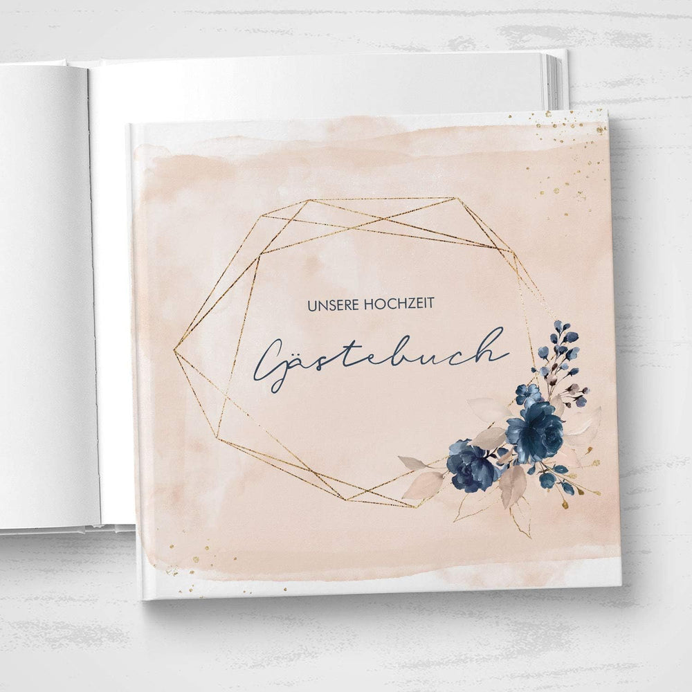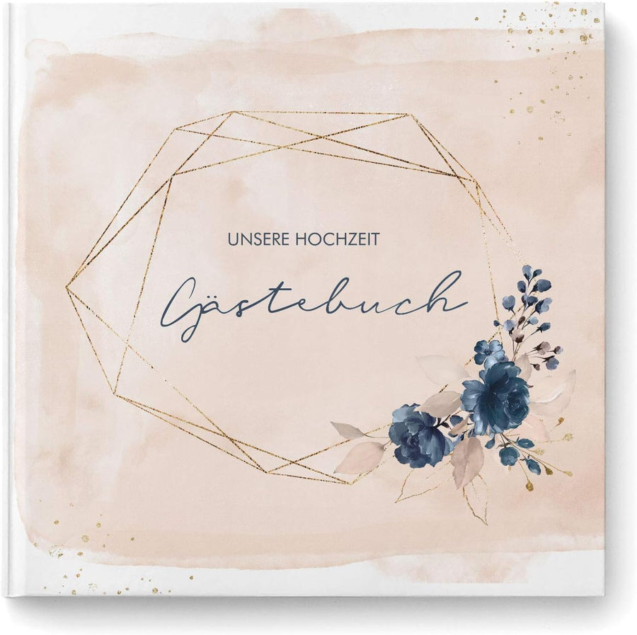 DeinWeddingshop Gästebuch Hochzeit - personalisiert - Hochzeitsgästebuch, Hardcover 21x21 cm (Inhalt