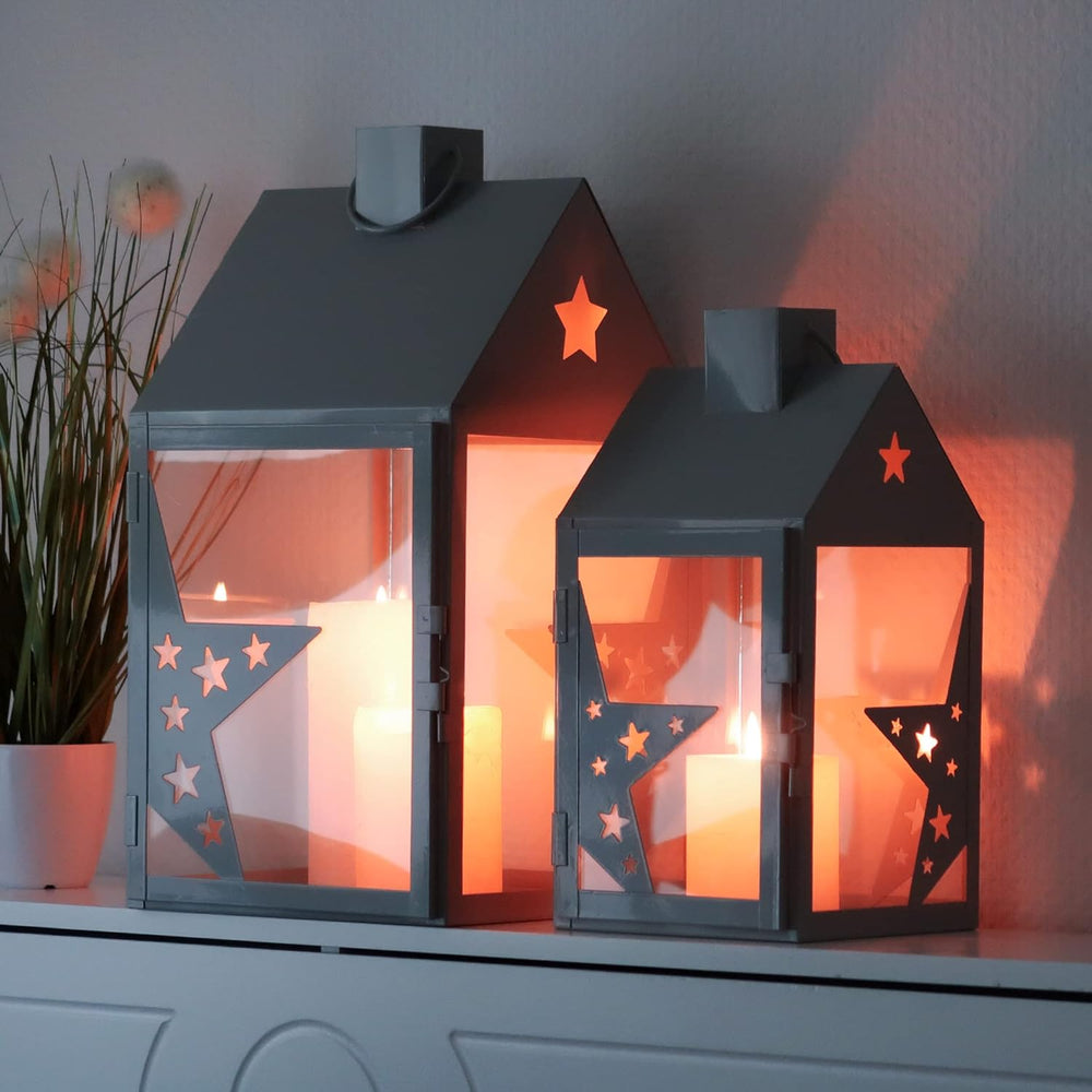 Dekovita 2er-Set Metall-Laterne 30cm/38cm - Gartenlaterne mit Glas-Scheiben - Windlicht Sterne Licht