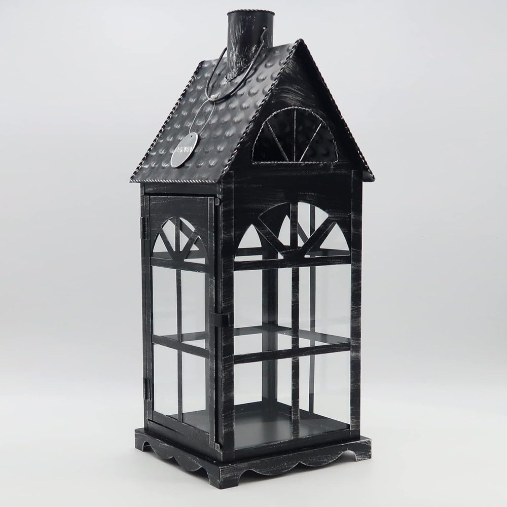 Dekovita 50cm Metall-Laterne Lichthaus - Gartenlaterne mit Glas-Scheiben - Windlicht Haus Deko-Later