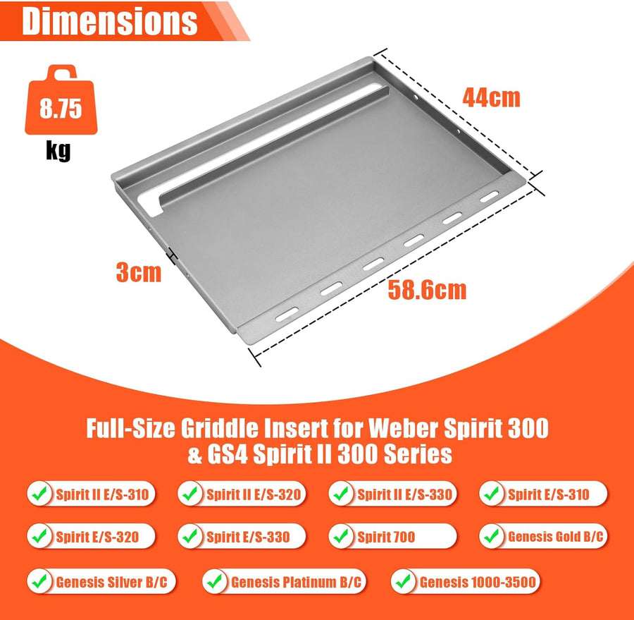 Denmay 58.6 x 44cm Plancha Grillplatte für Weber Spirit 300 Serie, Universal Grillplatte Ersatz für