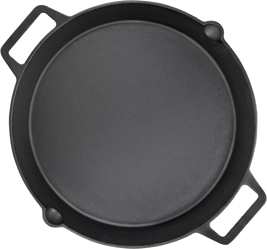 Denmay Ø 40cm Universal Gusseisen Grillpfanne, gross rund Gusspfanne mit zwei Griffe und zwei Ausgie