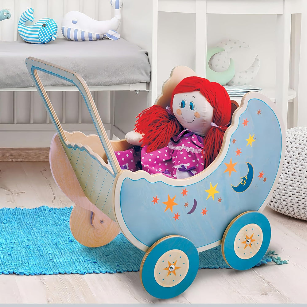 Dida - Der Puppenbuggy Aus Holz Dekoration Mond ist EIN Holzpuppenwagen Zum Schieben Der Puppen Der
