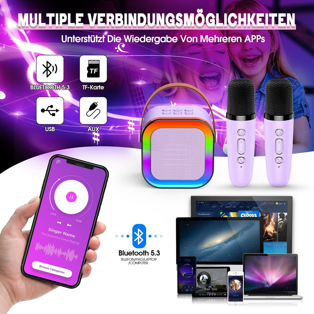 Karaoke Maschine mit 2 Karaoke Mikrofon Bluetooth, Geschenk Spielzeug Junge 3-12 Jahre, Tragbarer Mi