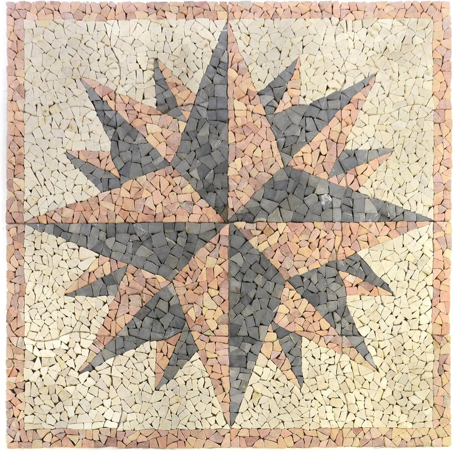 Divero Fliesen Rosone Blume Sonne Windrose Naturstein Mosaik Marmor dekorativ Creme-grau-rosé 120x12