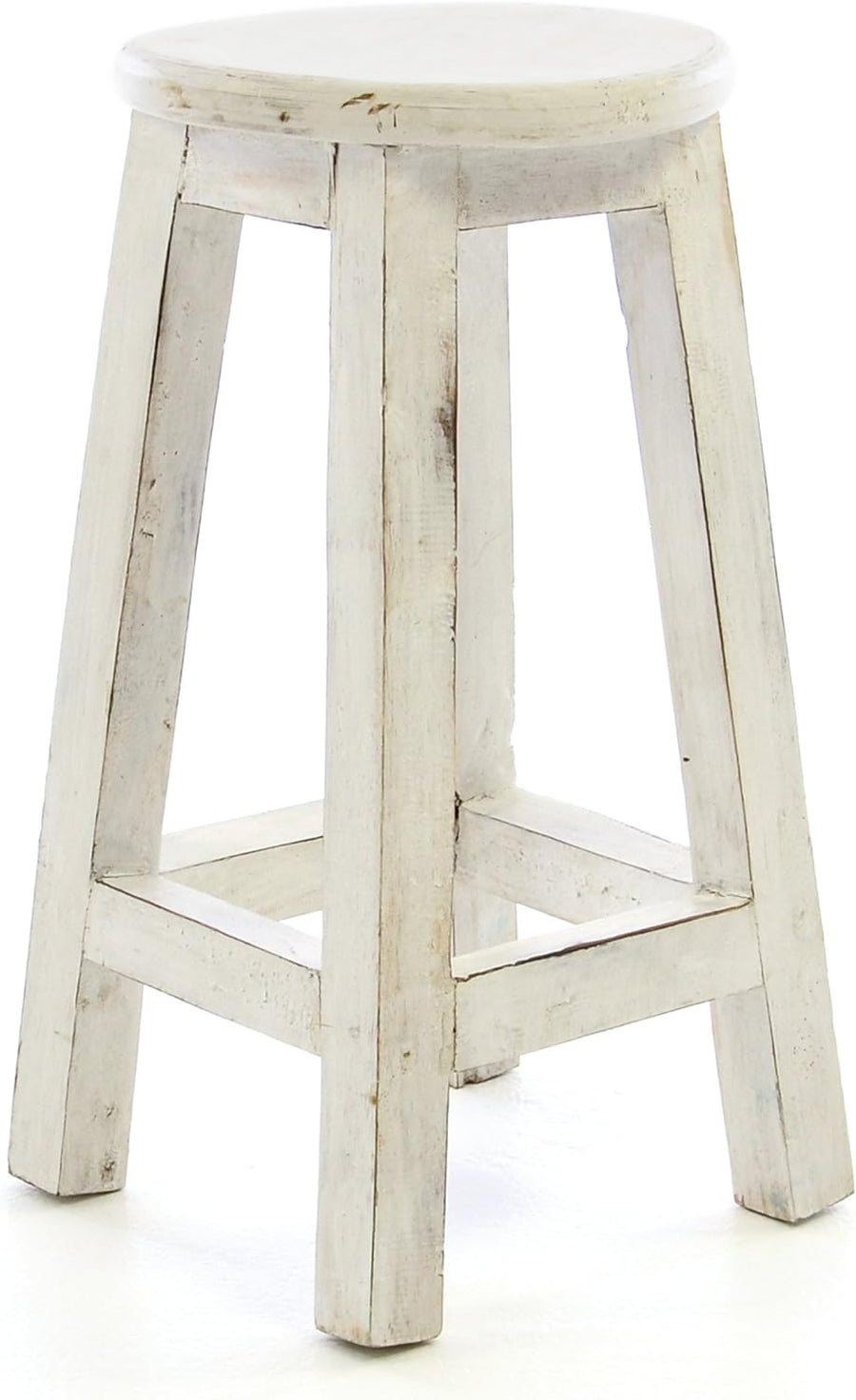 Divero Rustikaler Hocker rund massiv Holz Sitzhocker weiss im Vintage-Look Schemel Blumentisch Blume