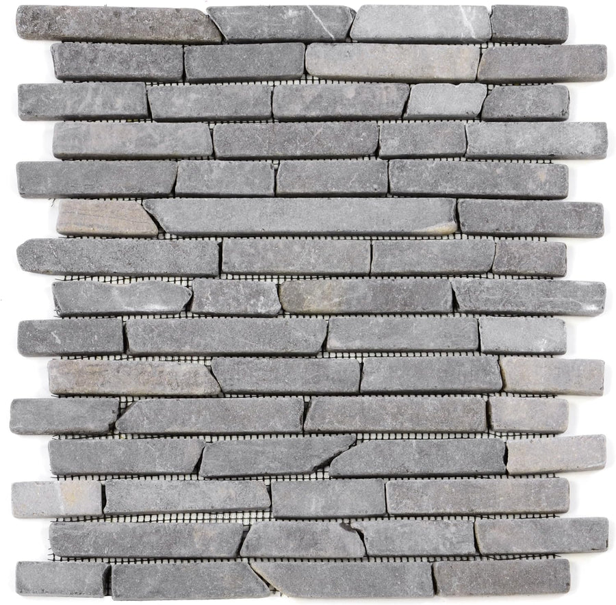 DIVERO 11 Fliesenmatten Naturstein Stäbchen Mosaik Fliesen aus Marmor für Wand und Boden grau á 29 x
