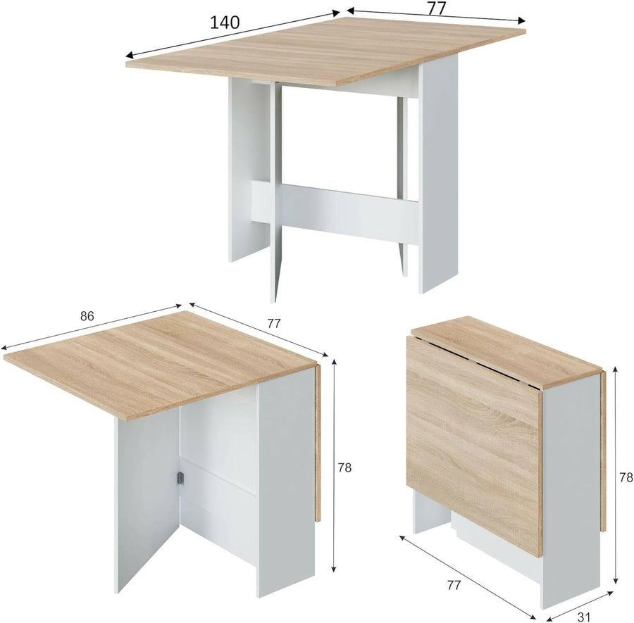 Dmora - Ausziehbarer Toledo-Tisch, klappbarer Esstisch mit klappbarer Platte, klappbarer Beistelltis