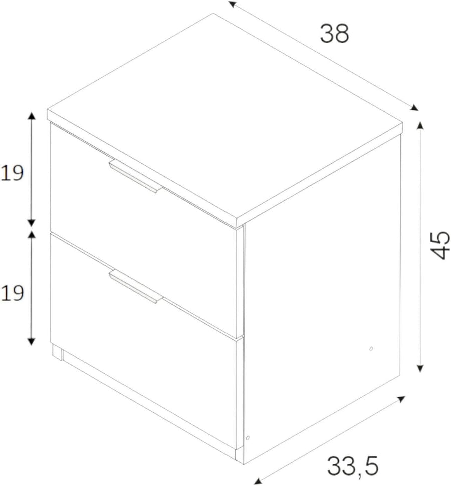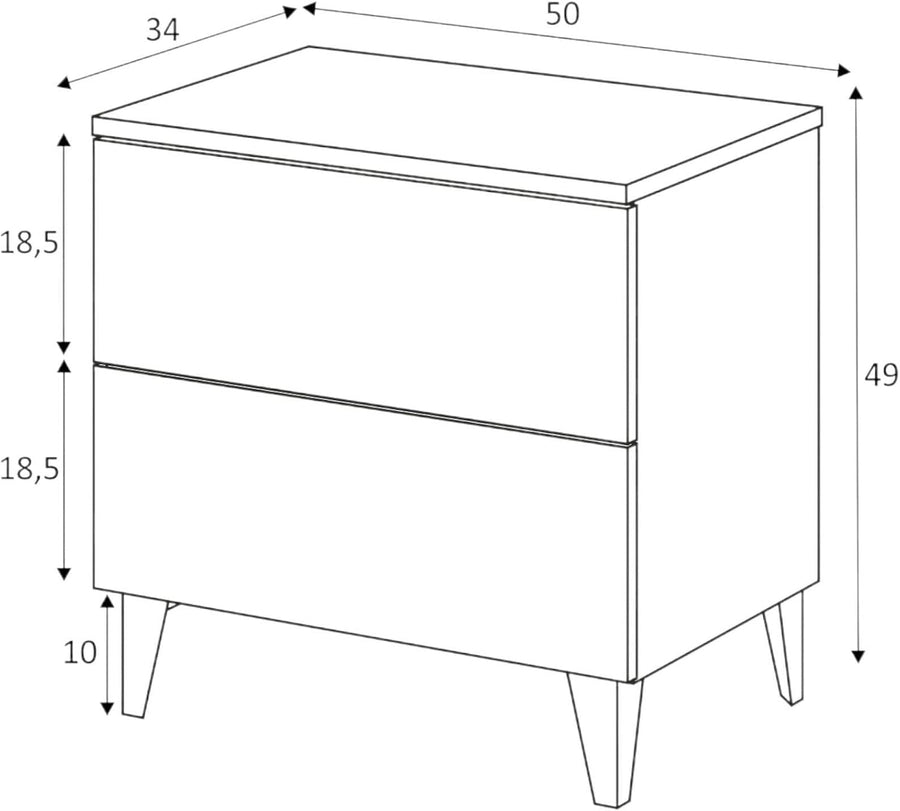 Dmora - Nachttisch Syracuse, Moderner Nachttisch mit 2 Schubladen, Nachttisch, Niedrige Kommode für