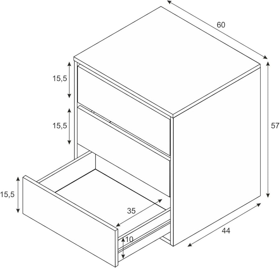 Dmora Kommode mit drei Schubladen, weisse Farbe, Masse 60 x 57 x 44 cm
