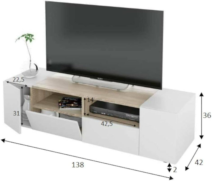 Dmora - Topeka TV-Ständer, Fernseh-Sideboard für das Wohnzimmer, moderner TV-Ständer, niedriges Mehr