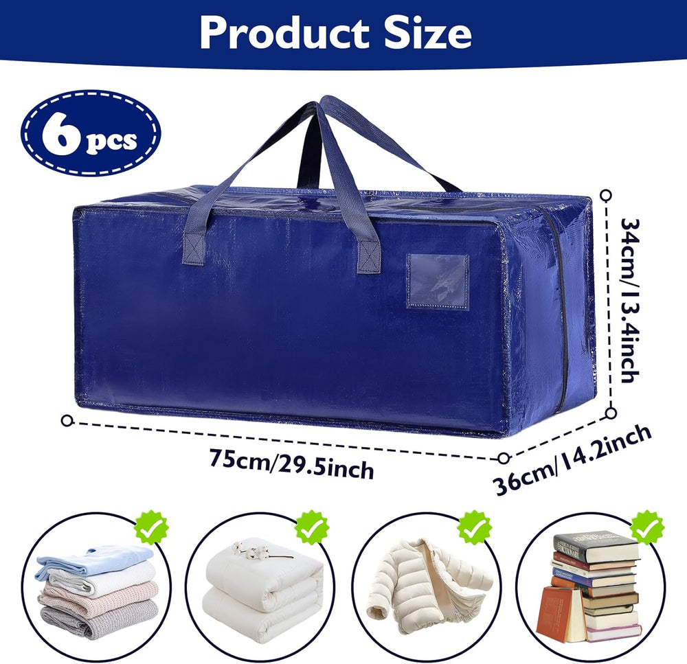 Dokeno 6 Stück 92L Aufbewahrungstasche, Grosse Umzugstaschen mit Rucksackgurten, Wasserdicht Aufbewa