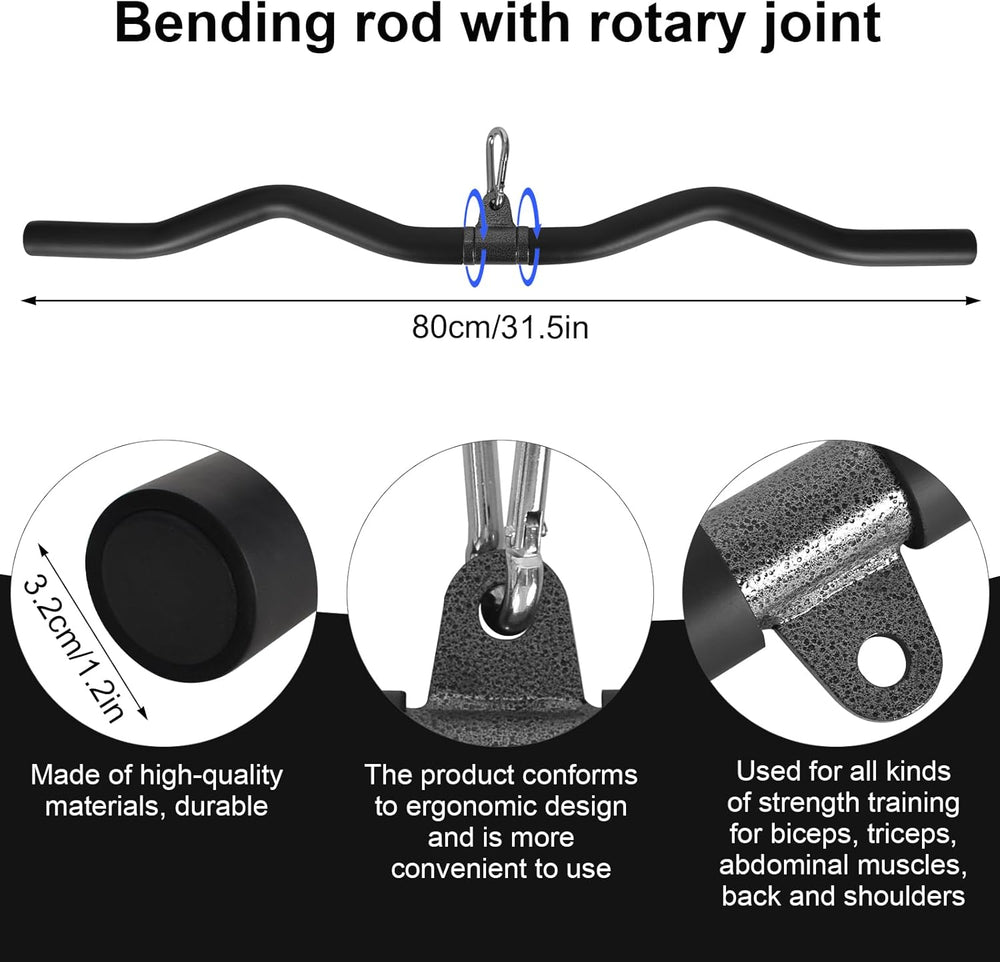 Latzugstange 80 cm, Bizeps Stange Schwarz, Trizeps Stange, Zugstange Fitness mit Drehgelenk für Zuha