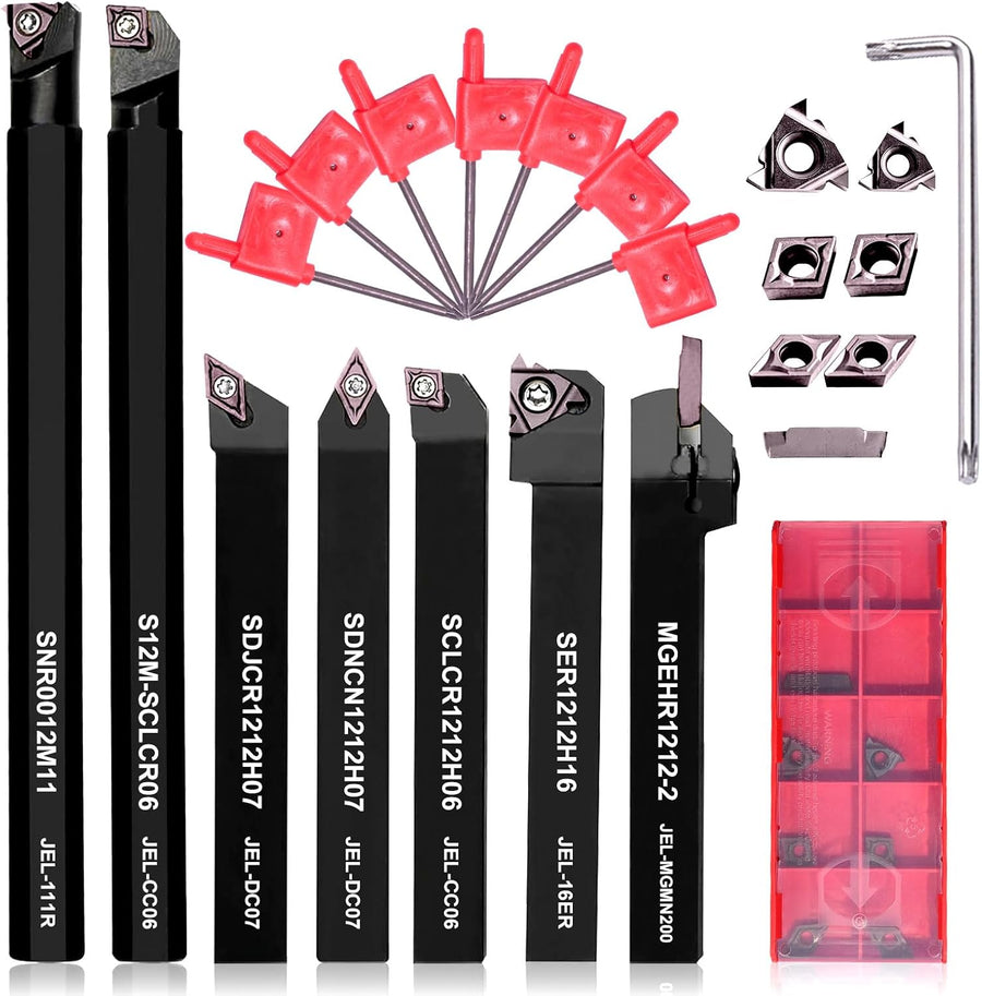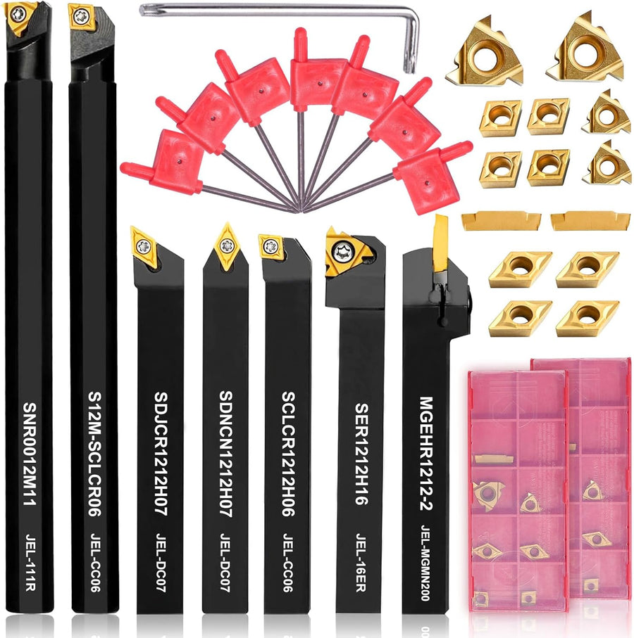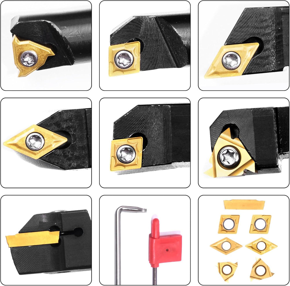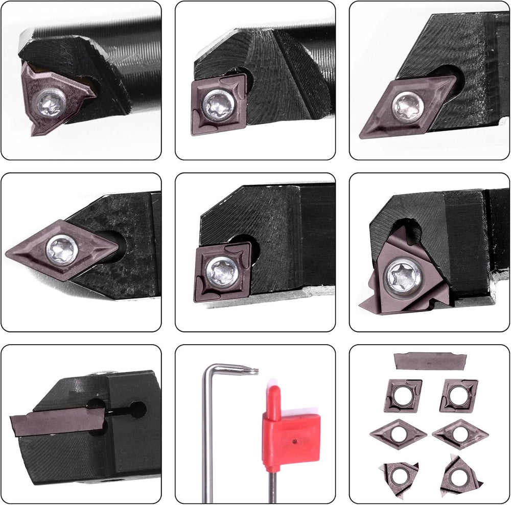 21er Set Drehmeissel, 12mm Bohrstange Schaftdrehmaschine Drehwerkzeughalter mit Hartmetall-Wendeschn