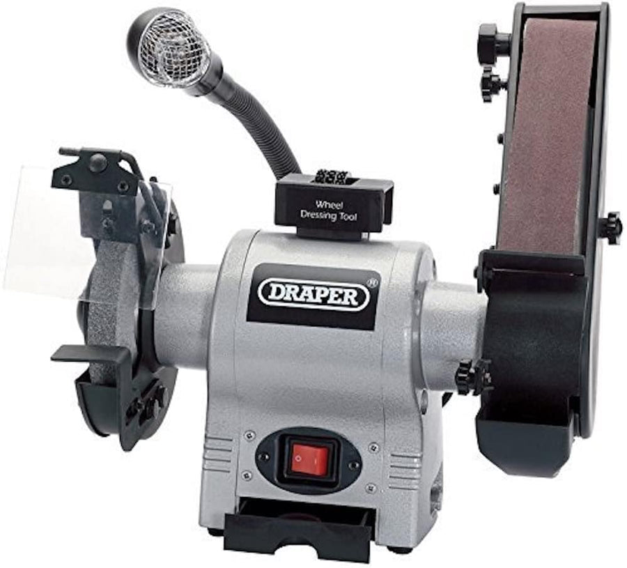 Draper 05096 150 mm 370 W 230 V Tischschleifmaschine mit Schleifband und Arbeitsleuchte