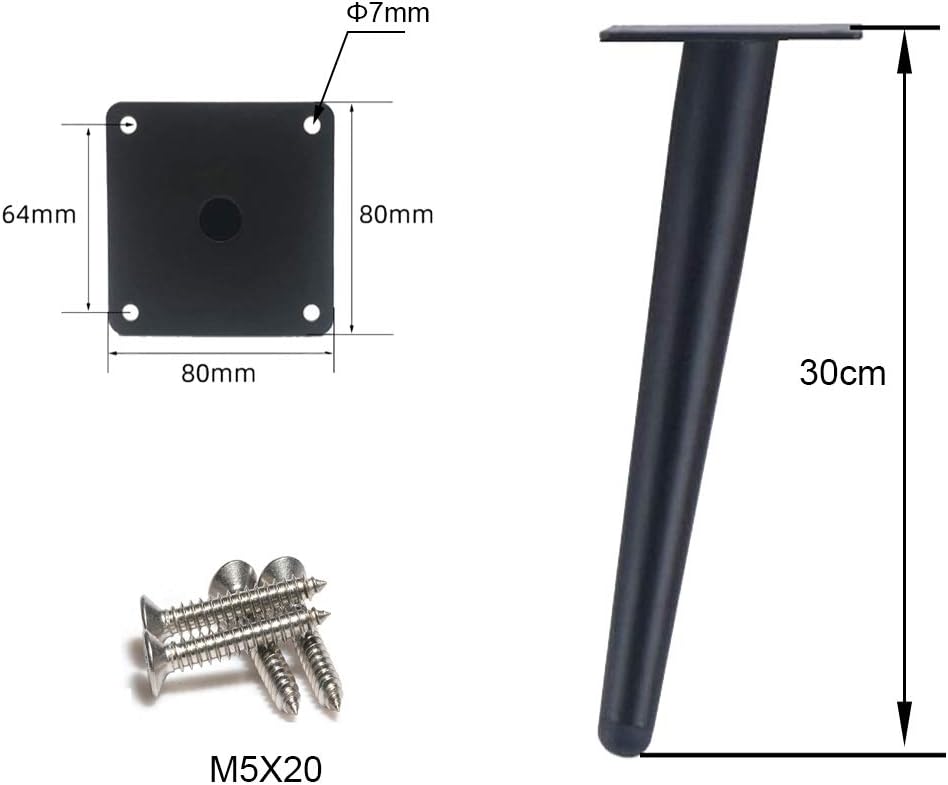 Drenky 4 Stück Schräge Tischbeine, Metallschrankbeine, Kegel Möbelbeine, 201 Edelstahl,Schwarz, 30 c