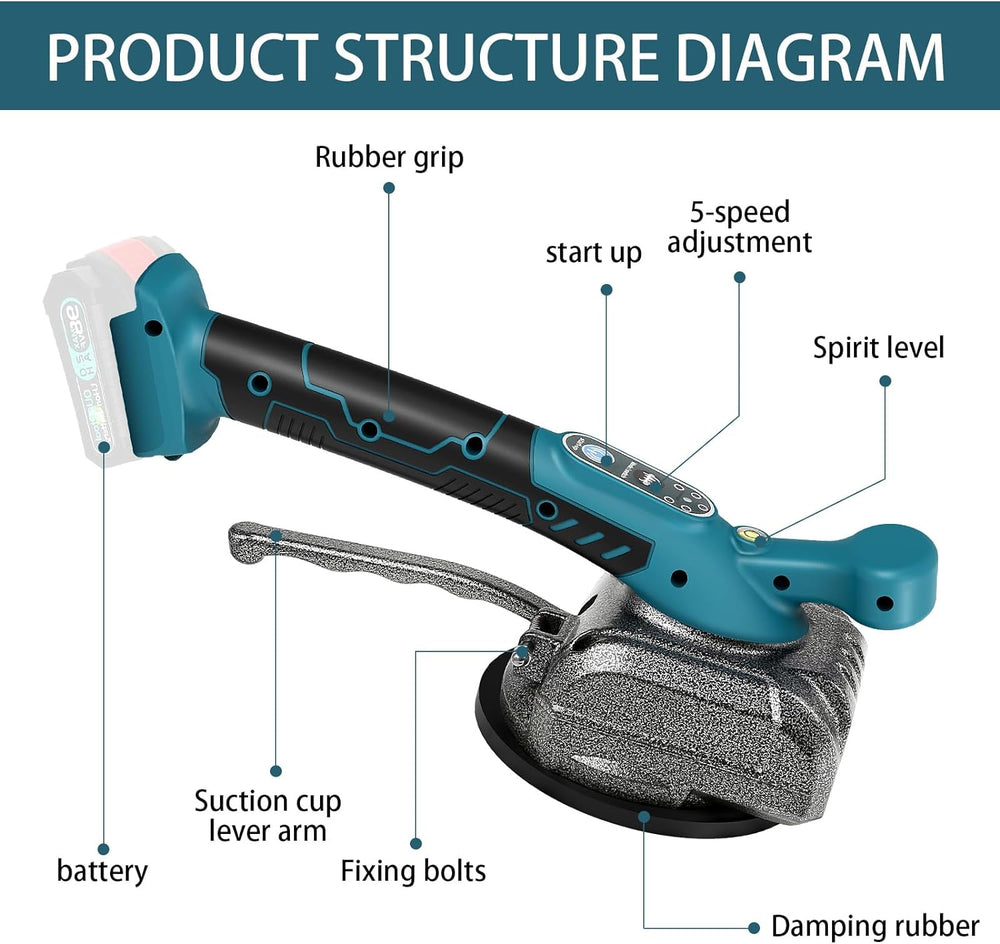 Fliesenvibrationsmaschine für Makita 18v, Fliesenleger-Vibrationsgerät mit 4,7" Saugnapf, 5 Gänge, e