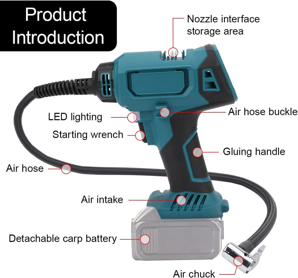 Akku Kompressor Für Makita 18v, 130PSI Elektrische Luftpumpe Autokompressor, LED Digitaler Druckanze