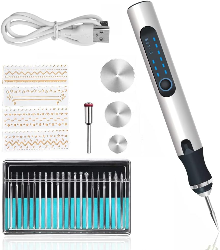 Gravierwerkzeugsatz, USB Mini Gravierstift Mit Gravurzubehör, Kabelloses Graviergerät Für Metall Gla